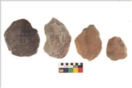 | Description / विवरण | Specimen of a Irregular chopping pebble with flat bottom. |