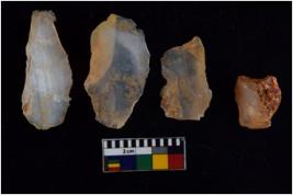 | Description / विवरण | There are n 4 flakes tool; there are large flakes with sides trimmed, Marks of secondary flaking are present on the both the faces. The dorsal is relatively flat. |