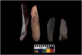 | Description / विवरण | There are n 4 of utilized worked blades and have irregular dominant scar pattern. Three are tapering at one end. |