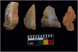 | Description / विवरण | There are n 4 flakes tool; there are large flakes with sides trimmed, Marks of secondary flaking are present on the both the faces. The dorsal is relatively flat. |