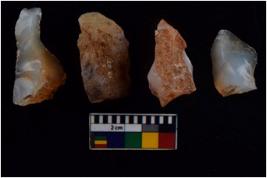 | Description / विवरण | There are n 4 flakes; there are multidirectional irregular scar pattern on them; made of short flakes and all four have blunted edges. |