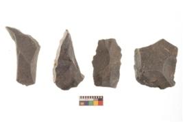 | Description / विवरण | There are n 4 utilized flake cores. There are multi directional irregular scar pattern on both dorsal and ventral face of the flake cores. Two have sharp edges and two have blunted edges. |