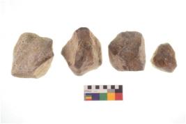 | Description / विवरण | There are n 4 of utilized worked cores and show irregular scar pattern. Two have a flat base. |