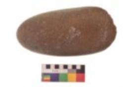 | Description / विवरण | Specimen of a roughly oval shaped saddle quern. It is brownish in colour and smooth in texture. It is roughly round in cross section. |
