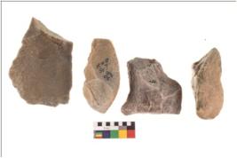 | Description / विवरण | There are n 4 flakes tool; there are triangular shaped flake looks like asymmetric point. It shows thick flaked bottom and flaked pointed functional cutting top edge. |