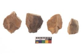 | Description / विवरण | There are n 4 of utilized worked cores and show irregular scar pattern on both dorsal and ventral side. One has a broken tip. |