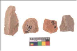 | Description / विवरण | There are n 4 cores. There are multi directional irregular scar pattern on both dorsal and ventral face of the cores. Some have blunted edges and some have round edges. |