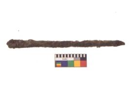 | Description / विवरण | Specimen of a long nail with sharp pointed functional bottom end and round slightly projected top. |