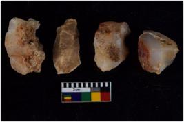 | Description / विवरण | There are n 4 flakes tool; there are triangular flake tool having flat thick body and deep long flake scar is seen on the upper side. It has flat thick bottom and pointed functional top. |