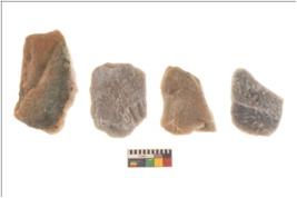| Description / विवरण | Specimen of a sub rectangular flakes tool having flat flaked butt end and narrow pointed functional edge. It has thick mid rib portion. |