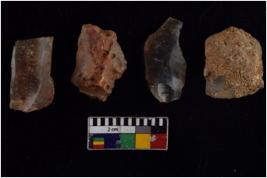| Description / विवरण | There are n 4 flakes tool; there are large flakes with sides trimmed, Marks of secondary flaking are present on the both the faces. The dorsal is relatively flat. One is pointed functional top. |