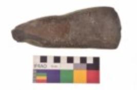 | Description / विवरण | Specimen of an handaxe with one elongated side for holding purpose. It is blackish in colour and smooth in texture. |