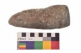 | Description / विवरण | Specimen of an handace with one elongated side for holding purpose. It is dark brown in colour and coarse in texture. |