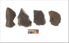 | Description / विवरण | There are n 4 utilized flake cores. There are multi directional irregular scar pattern on both dorsal and ventral face of the flake cores. Two have sharp edges and two have blunted edges. |