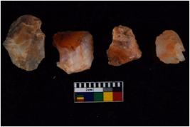 | Description / विवरण | Specimen of a triangular flake tool having flat thick body. A deep long flake scar is seen on the upper side. It has flat thick bottom and pointed functional top. It can be used as point |