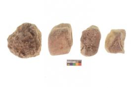 | Description / विवरण | There are n 4 of utilized worked cores and show irregular scar pattern on both dorsal and ventral side. Two have broken tip and a flat base. |