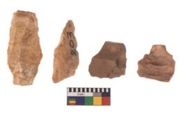 | Description / विवरण | There are n 4 of utilized worked cores and show irregular scar pattern on both dorsal and ventral side. Two are elongated in shape. |