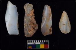 | Description / विवरण | There are n 4 flakes tool; there are large flakes with sides trimmed, Marks of secondary flaking are present on the both the faces. The dorsal is relatively flat. |