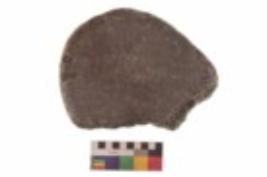 | Description / विवरण | Specimen of a roughly oval shaped grinding stone. It is brownish in colour and smooth in texture. It has flat base. |