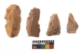| Description / विवरण | There are n 4 of utilized worked cores and show irregular scar pattern. Two have a broken tip. |