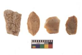 | Description / विवरण | There are n 4 of utilized worked cores and show irregular scar pattern on both dorsal and ventral side. One has a flat base. |