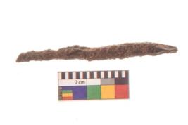 | Description / विवरण | Specimen of a long nail with sharp pointed functional bottom end and round slightly projected top. |