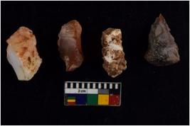 | Description / विवरण | There are n 4 flakes; there are multidirectional irregular scar pattern on them; made of short flakes and all four have blunted tapering edges. |