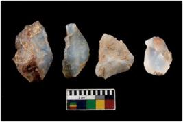 | Description / विवरण | There are n 4 utilized flake cores. There are multi directional irregular scar pattern on them. Two are tapering at one end and two have blunted edges. |