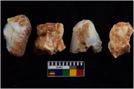 | Description / विवरण | There are n 4 flakes tool; there are flakes tool with prominent flaking marks. It made up of a large flakes with sides trimmed. It is rectangular in shaped. |