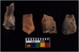 | Description / विवरण | There are n 4 flakes tool; there are large flakes with sides trimmed, Marks of secondary flaking are present on the both the faces. The dorsal is relatively flat. One is pointed functional top |