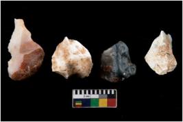 | Description / विवरण | There are n 4 utilized flake cores. Out of them one is made up of Chert and three are made up of Chalcedony. There are multi directional irregular scar pattern on them. Two are tapering at one end and two have blunted edges. |