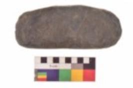 | Description / विवरण | Specimen of an uneven shaped saddle quern. It is brownish in colour and smooth in texture. It is round in cross section. |