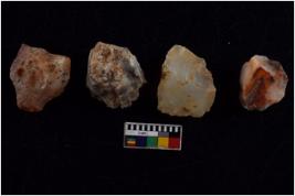 | Description / विवरण | There are n 4 flakes tool; there are large flakes with sides trimmed, Marks of secondary flaking are present on the both the faces. The dorsal is relatively flat. |