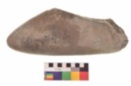 | Description / विवरण | Specimen of an uneven shaped saddle quern. It is brownish in colour and smooth in texture. It is round in cross section. |