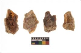 | Description / विवरण | Specimen of fluted cores having several broad fluted marks indicating the detached blades from it. |