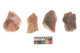 | Description / विवरण | There are n 4 of utilized worked cores and show irregular scar pattern. One has a flat base. |