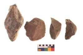 | Description / विवरण | There are n 4 of utilized worked cores and show irregular scar pattern on both dorsal and ventral side. Three are tapering at one end. |