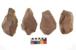 | Description / विवरण | There are n 4 of utilized worked cores and show irregular scar pattern on both dorsal and ventral side. They have sharp edges. |
