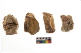 | Description / विवरण | Specimen of fluted cores having several broad fluted marks indicating the detached blades from it. |