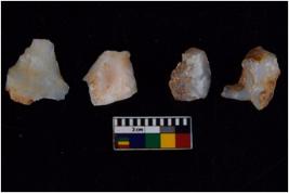 | Description / विवरण | There are n-4 of utilized cores. There are multidirectional irregular dominant scar pattern on both dorsal and ventral face of the cores. Some of them bulge of percussion and some are flat flake cores. |