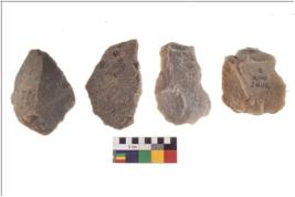 | Description / विवरण | There are n 4 flakes tool; there are multidirectional irregular scar pattern on them; made of short flakes and all four have tapering edges. |