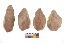 | Description / विवरण | There are n 4 of utilized worked cores and show irregular scar pattern. They are tapering at one end. |