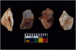| Description / विवरण | There are n-4 of utilized Flakes . There are multidirectional irregular dominant scar pattern on both dorsal and ventral face of the cores. Some of them bulge of percussion and some are flat flake cores. |