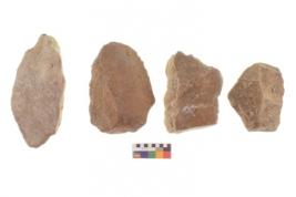 | Description / विवरण | There are n 4 of utilized worked cores and show irregular scar pattern. Two have a flat base and one has a broken tip. |