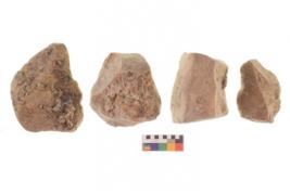 | Description / विवरण | There are n 4 of utilized worked cores and show irregular scar pattern on both dorsal and ventral side. Three have a broken tip. |