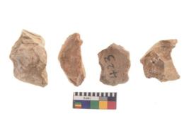 | Description / विवरण | There are n 4 of utilized worked cores and show irregular scar pattern on both dorsal and ventral side. Three are tapering at one end. |