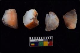 | Description / विवरण | There are n 4 flakes tool; there are large flakes with sides trimmed, Marks of secondary flaking are present on the both the faces. The dorsal is relatively flat. One is pointed functional top. |
