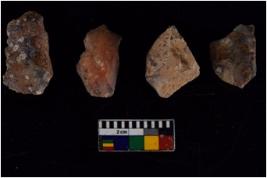 | Description / विवरण | There are n-4 of utilized Flakes . There are multidirectional irregular dominant scar pattern on both dorsal and ventral face of the cores. Some of them bulge of percussion and some are flat flake cores. |