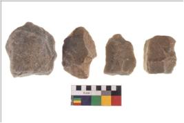 | Description / विवरण | There are n 4 flakes tool; there are multidirectional irregular scar pattern on them; made of short flakes and all four have tapering edges. |