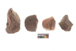 | Description / विवरण | There are n 4 of utilized worked cores and show irregular scar pattern on both dorsal and ventral side. Two are tapering at one end. |